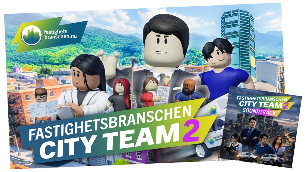 När det gäller just unga och deras kännedom om branschen så är vi väldigt glada över att snart kunna presentera vårt nya Robloxspel: Fastighetsbranschen CITY TEAM 2. I samband med lanseringen så kommer vi även att göra musiken från spelet tillgängligt på Spotify.